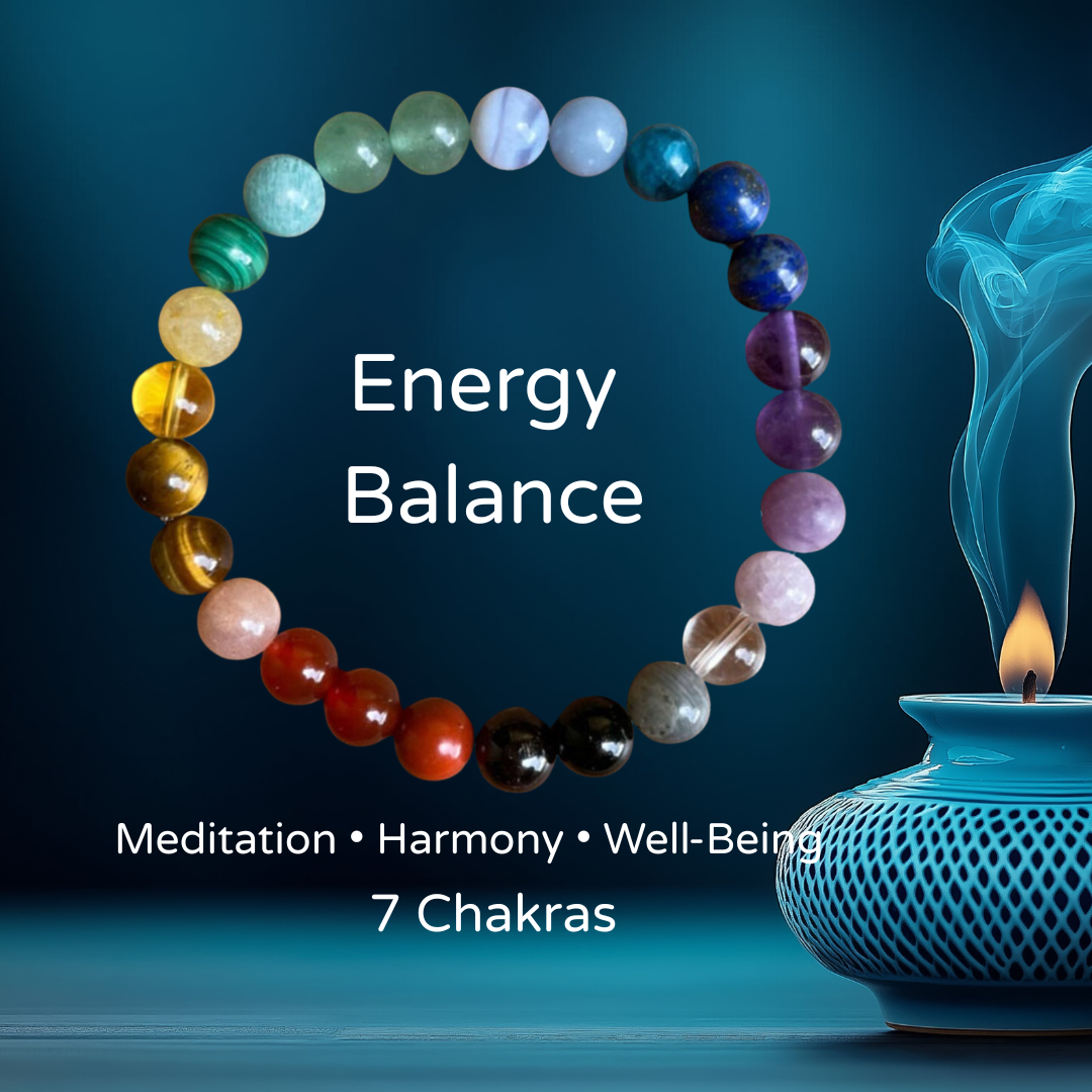 Energy Balance Bracelet – 7 Chakras (8mm Beads)